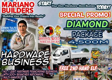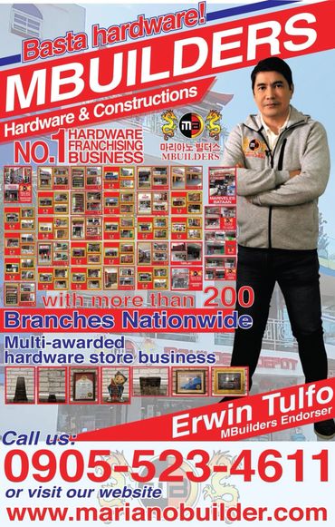 MBUILDERS IS A HARDWARE AND CONSTRUCTION SUPPLY BUSINESS WHO ARE HELPING OFW AND BUSINESS MINDED PEOPLE TO FULFILL THEIR DREAMS OF HAVING A SOLID STABLE BUSINESS, THE FASTEST GROWING HARDWARE STORE CHAIN IN THE PHILIPPINES